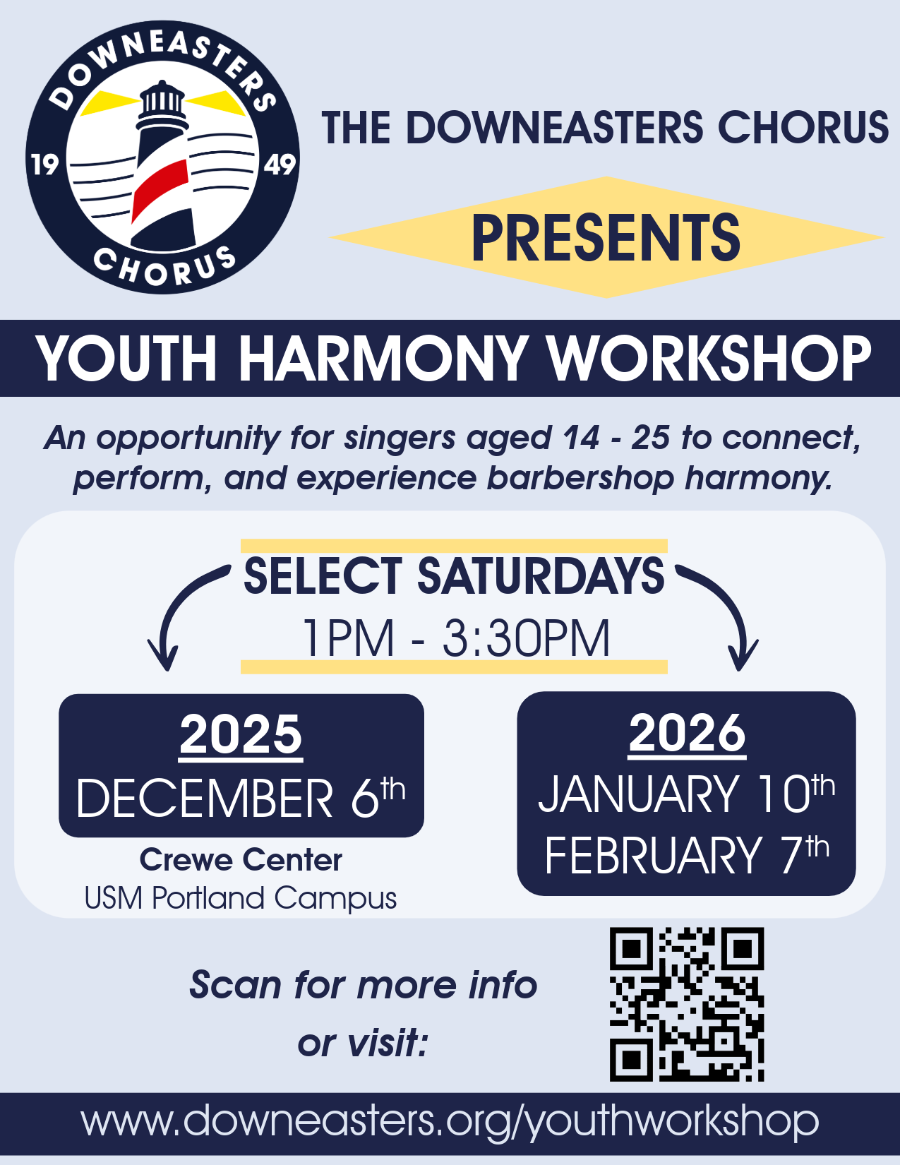 The Downeasters Chorus invites you to an exciting new opportunity to connect, perform, and experience the magic of barbershop harmony. Whether you’re a seasoned vocalist or just love to sing, this free workshop is designed to help you find your voice in harmony with others.